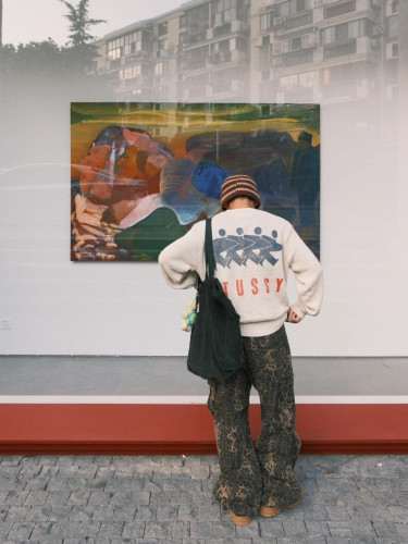 •스*US**(스투*)의 SURFMAN ICON 코튼 린넨 크루넥 니트로, 등판에 로고 프린트가 들어간 제품입니다. 오리지널을 구입해 맞춤 염색한 원사를 사용했으며, 리넨(아마)과 면의 혼방 원단으로 제작되어 피부에 바로 닿아도 까칠하지 않습니다. 소매와 밑단은 촘촘한 편직으로 탄탄하게 마감되어 형태가 잘 잡히고, 전체적으로 질감이 부드러워 손으로 만졌을 때 섬세한 촉감이 느껴집니다. 세탁라벨·넥라벨·행택 등 세 가지 표시는 모두 금형 제작한 맞춤 사양이며, 등판의 로고는 환경 친화적인 고무 소재 프린트로 처리되어 있습니다. 남녀 공용 디자인입니다.